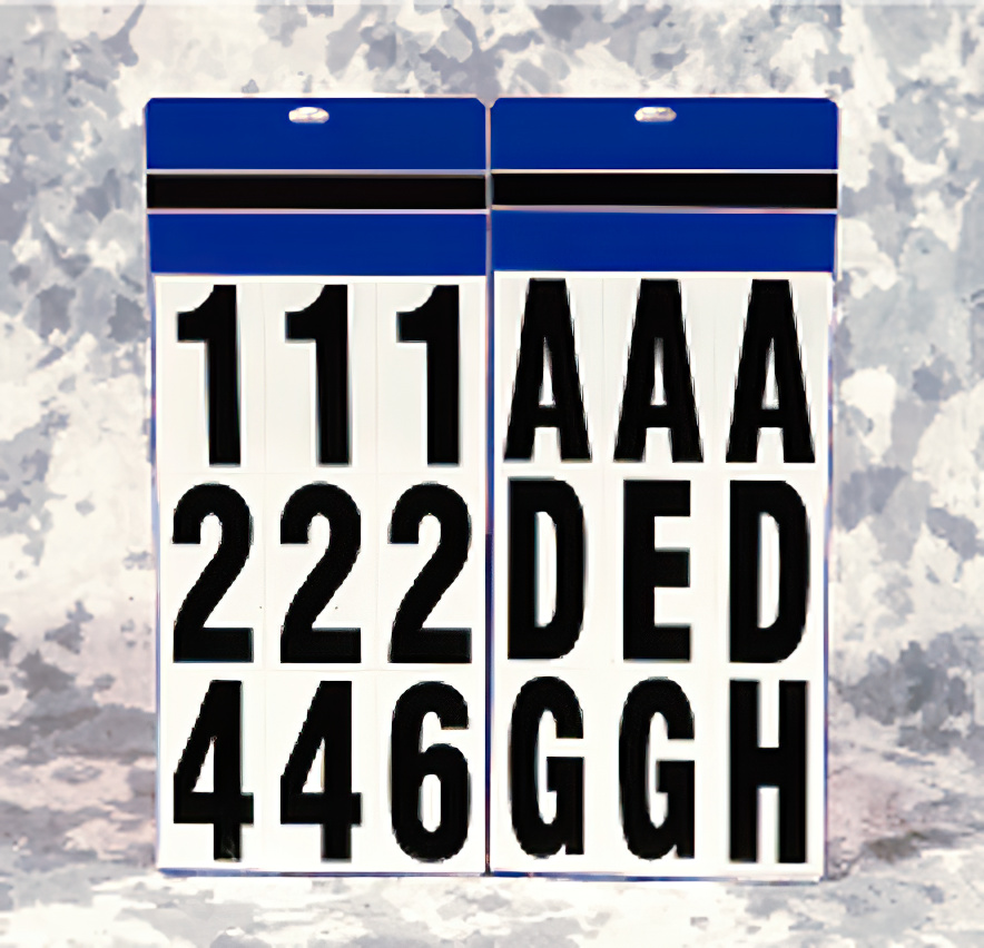 Letters (A-Z) and Numbers (0-9) have a permanent pressure sensitive back that adheres to all clean, smooth surfaces for indoor and outdoor use. Available in 2" or 3" Black vinyl letters with a White background.2" letters come in 60/pack; numbers 30/pack. 3" letters come 51/pack: numbers 25/pack.