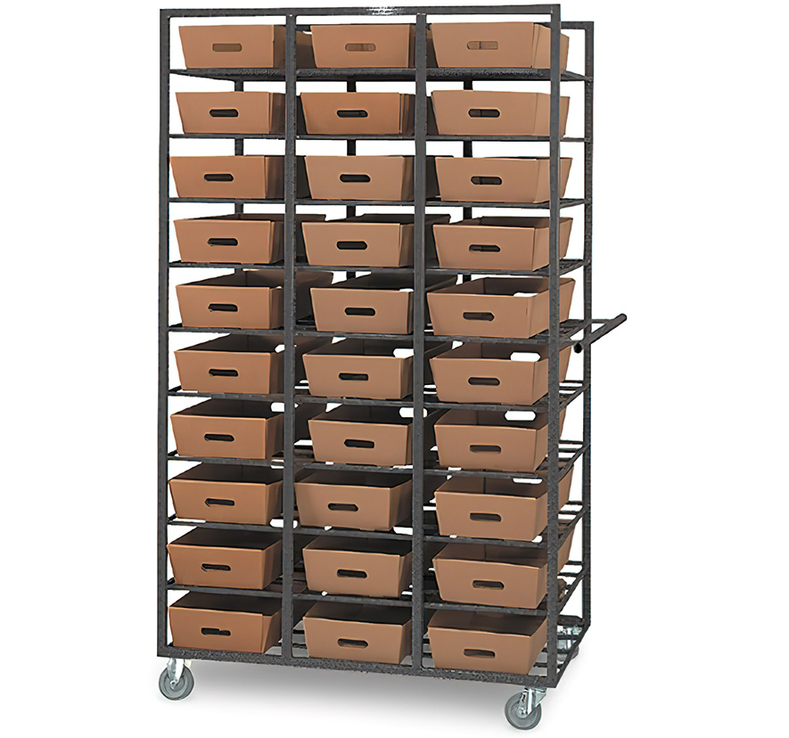 The Mail Tray Distribution Rack transports standard two foot or extended height mail trays. Functional in Processing Centers or Post Offices, the mail tray rack boasts special features that prolong its life and usefulness.