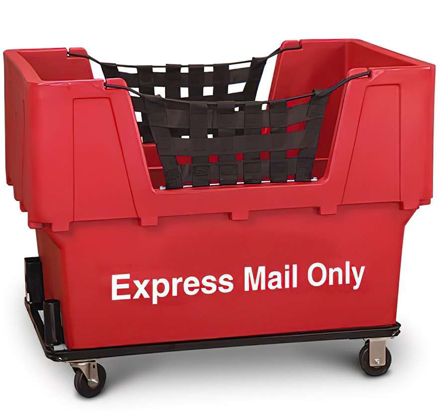 These "Express Mail Only" trucks have all the same features as the Standard Container Trucks: extreme durability, rust-proofness, easy access to contents, etc. The imprinting feature allows for easier identification of contents and helps facilities become organized, too. Trucks work in standard USPS dumpers.