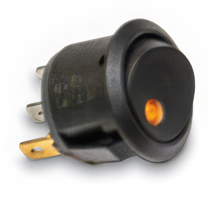 Illuminated amber low voltage on/off switch, mounts into switch housing plate