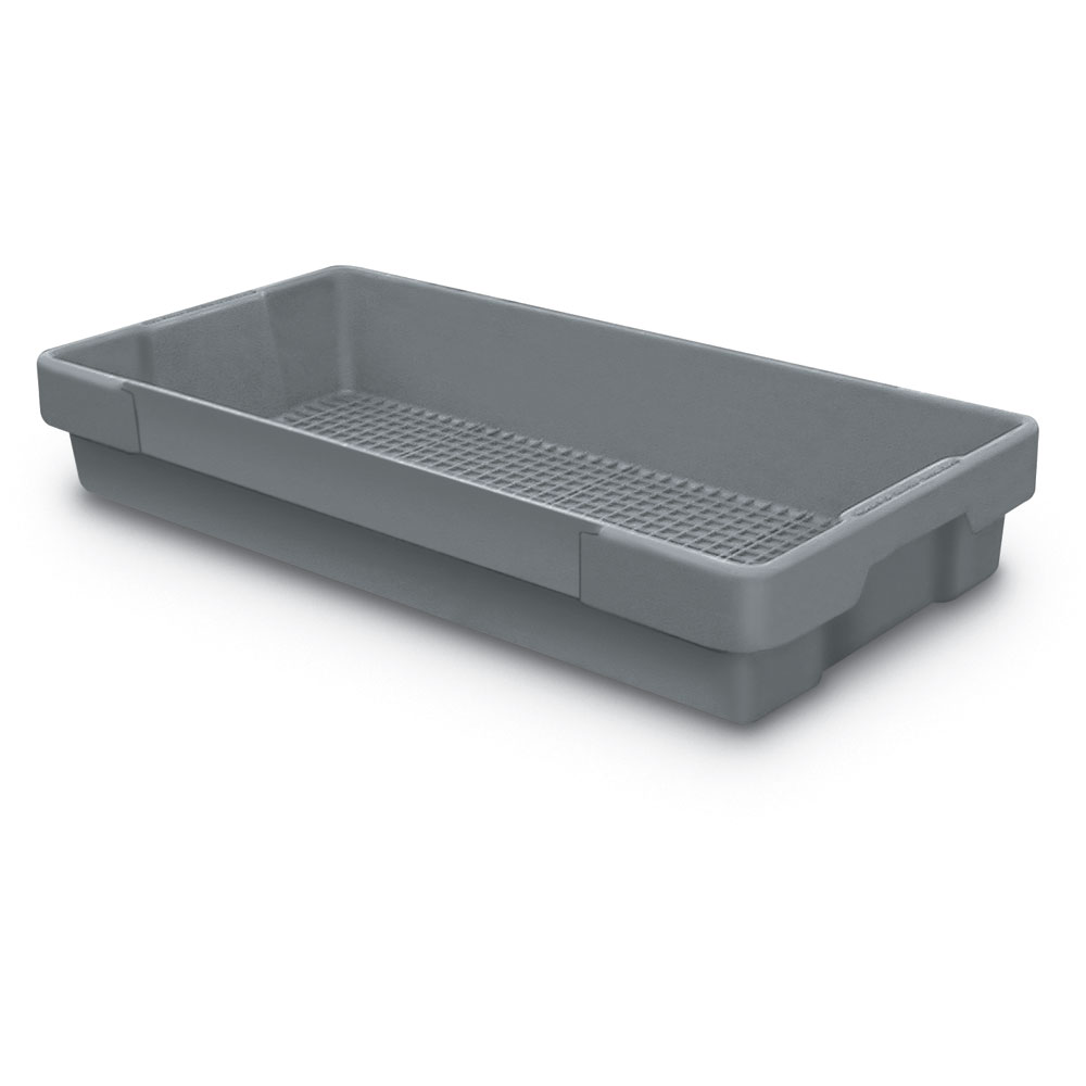 Often called a waffle tray due to the unique pattern on the bottom, these postal mail trays are injection molded, nestable and reinforced. Standard color is grey. Each mail tray includes hand pockets for easy transportation. Ships USPS.