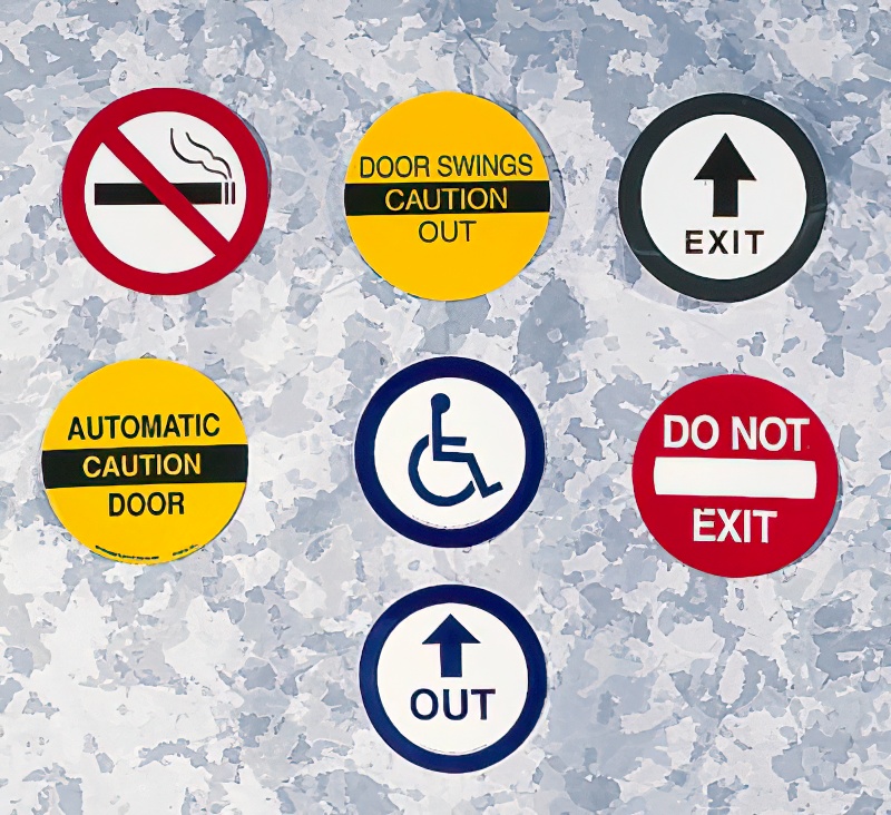 These Safety Door Decals are constructed of a durable vinyl material with a strong adhesive backing that adheres to glass and metal. Decals are particularly useful on doors and windows in buildings areas with a high amount of pedestrian traffic.